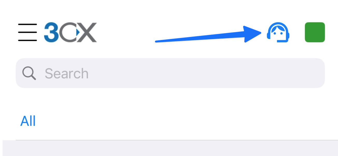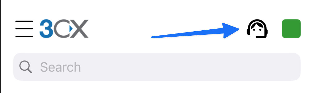 Norėdami prisijungti arba atsijunti nuo 3CX skambučių eilės (Call Queue), mobilioje programėlėje paspauskite agento ikonėlę.